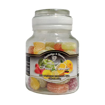 Assorted Fruit Shaped Candies – 34oz – 966g glass jar